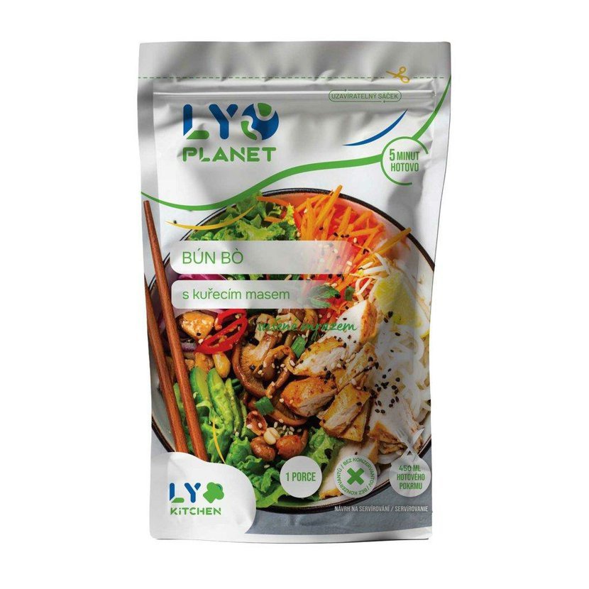 Lyo Bún bò Kuřecí - aromatický vietnamský pokrm s kuřecím masem, rýžovými nudlemi a voňavým vývarem.